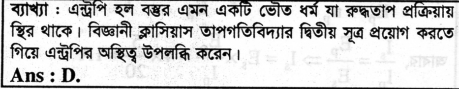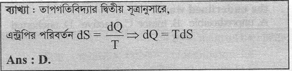 23. তাপগতিবিদ্যার দ্বিতীয় সূত্রের গানিতিক সংজ্ঞা কোনটি?