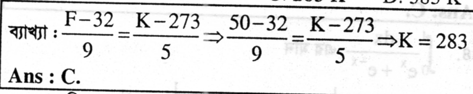 31. ফারেনহাইট স্কেলে কোন বস্তুর তাপমাত্রা 50°F হলে কেলভিন স্কেলে উক্ত বস্তুর তাপমাত্রা কত?