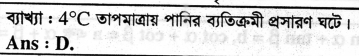 7. বিশুদ্ধ পানিকে 10°C হতে 1°C পর্যন্ত ঠান্ডা করা হল, পানির আয়তন-