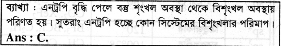 11. এন্ট্রপি কোন ভৌত ধর্মের পরিমাপ প্রদান করে ?