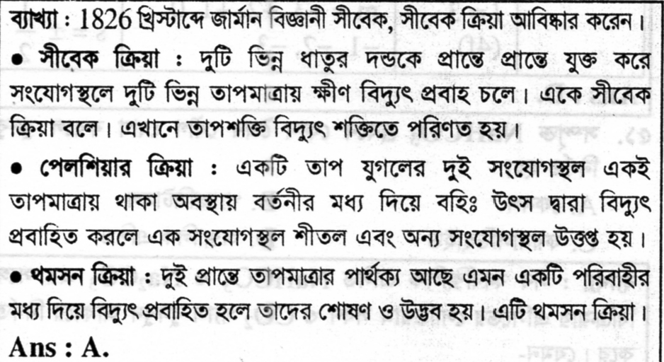 3. তাপমাত্রা থেকে বিদ্যুৎ শক্তি পাওয়া সম্ভব কোন ক্রিয়ায়?
