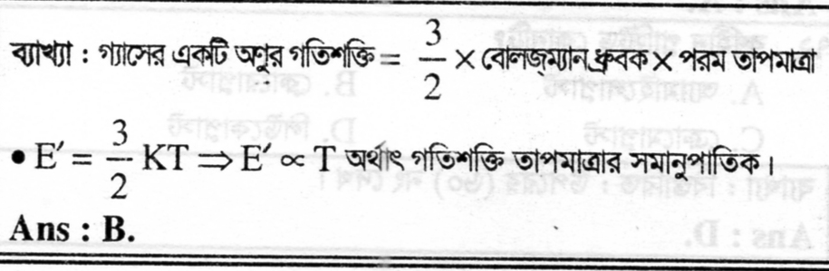 40. একটি কার্নো ইঞ্জিন (800K) ও (400K) তাপমাত্রায় যে দক্ষতায় কাজ করে ঠিক সমদক্ষতায় কাজ করে (T) ও (900K) তাপমাত্রায়। তাপমাত্রা (T) এর মান কত?