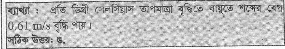 24. প্রতি ডিগ্রী সেলসিয়াস তাপমাত্রা বৃদ্ধিতে বায়ুতে শব্দের বেগ বৃদ্ধি পায়_____।