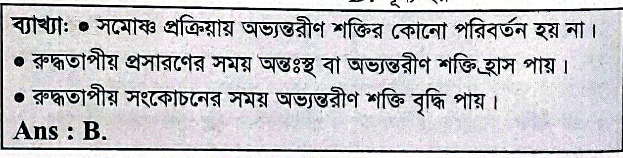 17. রুদ্ধতাপীয় সংকোচনের সময় গ্যাসের অভ্যন্তরীন শক্তি –