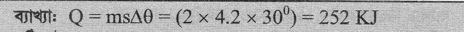 32. 2.0 kg পানির তাপমাত্রা 0° থেকে 30° এ উন্নীত করতে প্রয়োজনীয় তাপ হচ্ছে –