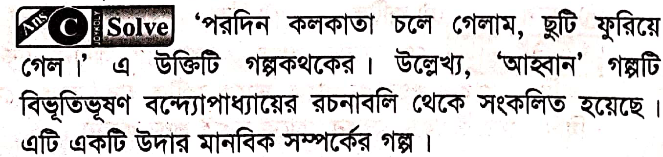 79. “পরদিন কলকাতা চলে গেলাম।” “আহ্বান’’ গল্পভুক্ত এই বাক্যে কার সম্পর্কে বলা হচ্ছে?