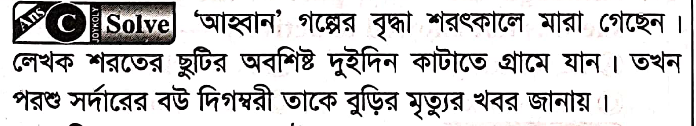 80. ‘আহ্বান গল্পের বৃদ্ধা মারা গেছেন কোন ঋতুতে?