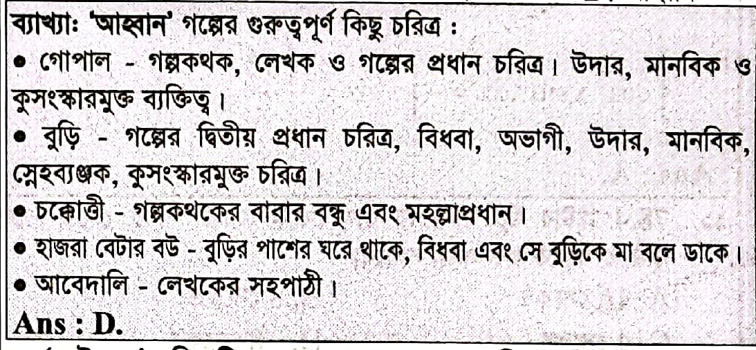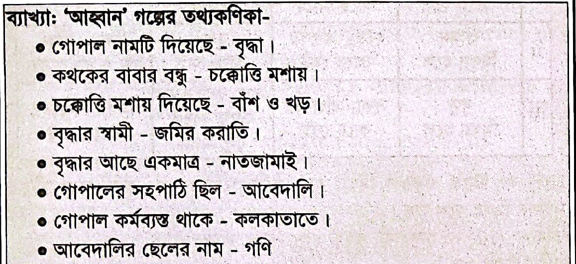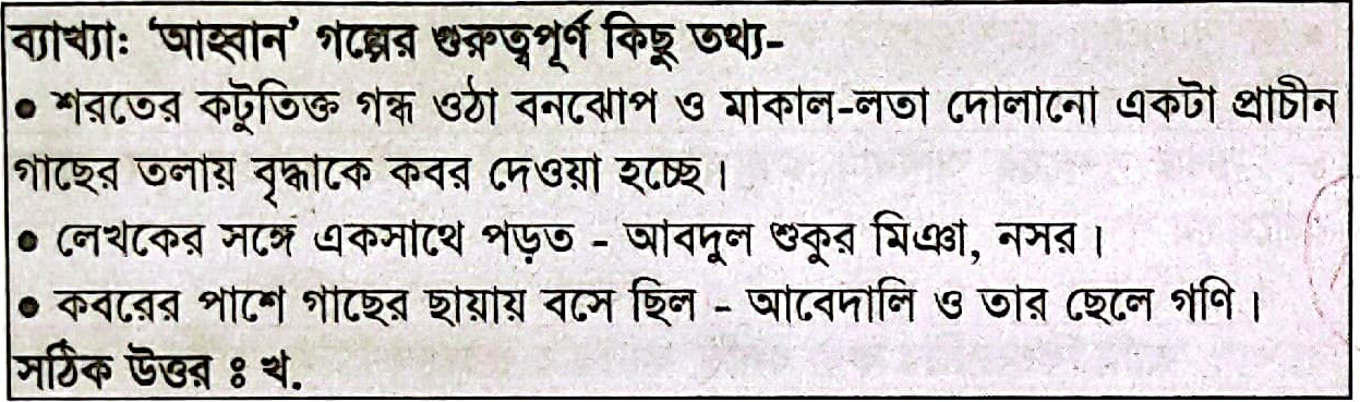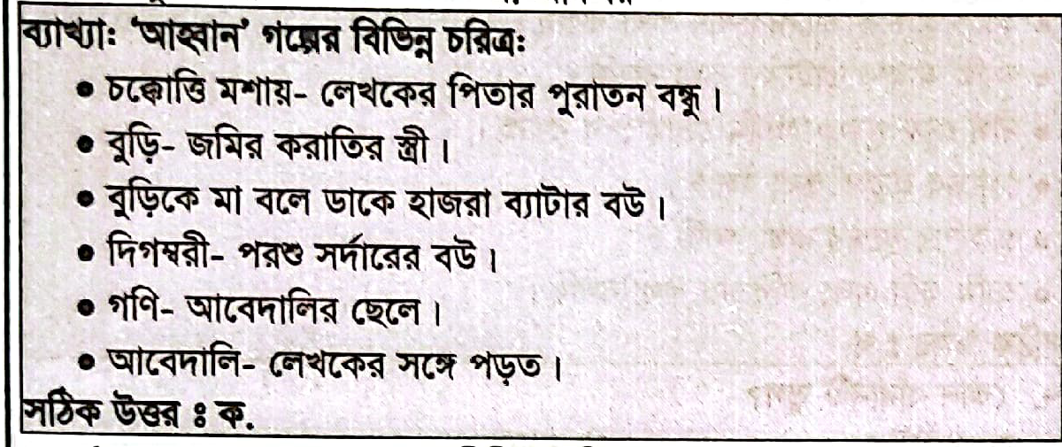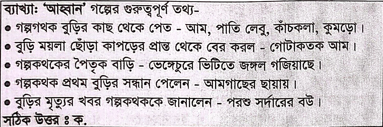 72. পাঠ্যসুচিভুক্ত “আহবান’ গল্পের বুড়ির স্বামীর নাম কী?