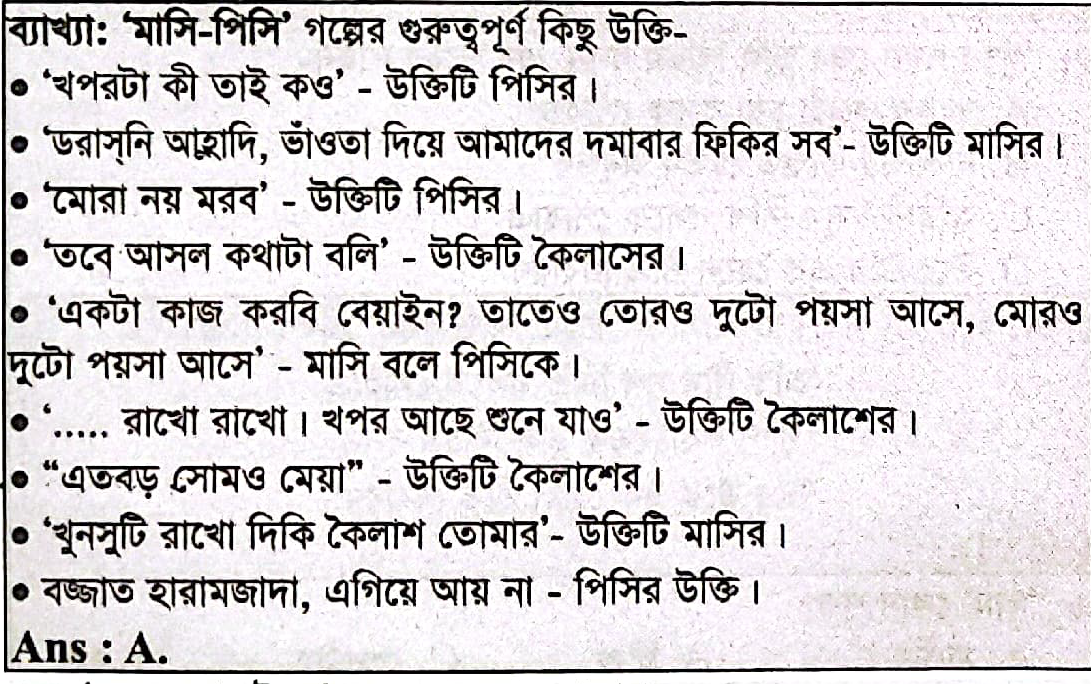 51. “মাসি-পিসি’ গল্পে আয়না বজ্জাত হারামজাদা’ উক্তিটি করেছে-