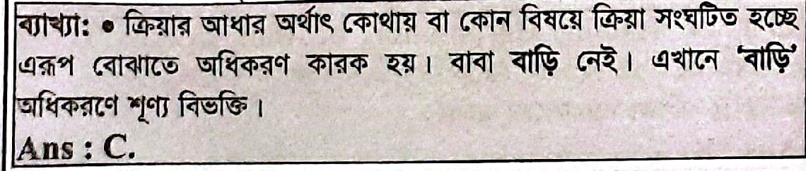 13. “বাবা বাড়ি নেই”, “বাড়ি” পদটি কোন কারকে কোন বিভক্তি?