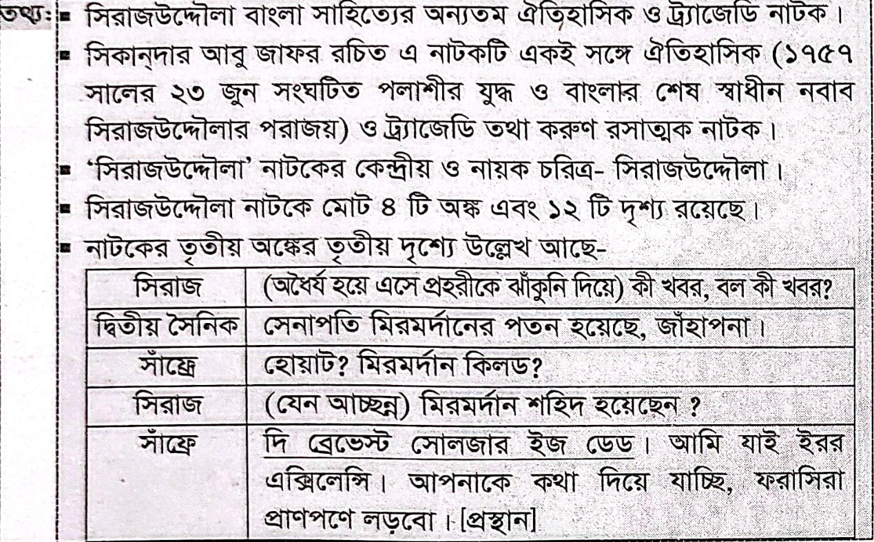 39. সিরাজউদ্দৌলা নাটকে ‘দি ব্রেভেস্ট সোলজার’ আখ্যা দেওয়া হয়েছে-