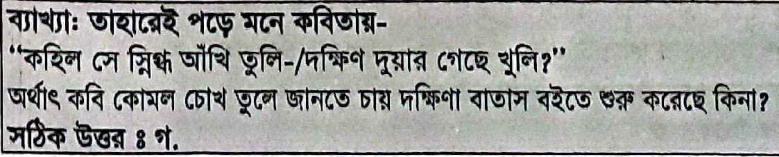 32. ‘তাহারেই পড়ে মনে’ কবিতায় কার গন্ধে দখিনা সমীর অধীর আকুল?