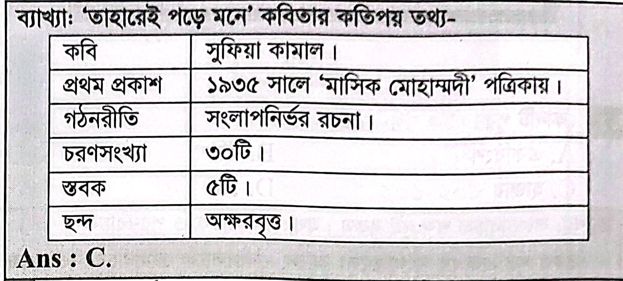 31. ‘তাহারেই পড়ে মনে’ কবিতাটি কত সালে প্রকাশিত হয়?