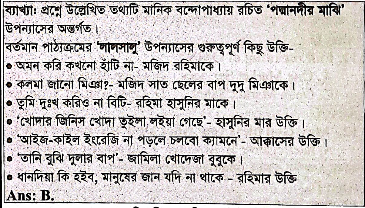 8. ’ধান দিয়ে কি হইবে, মানুষের জান যদি না থাকে।’ ‘লালসালু’ উপন্যাসের উক্তিটি কে করেছেন?
