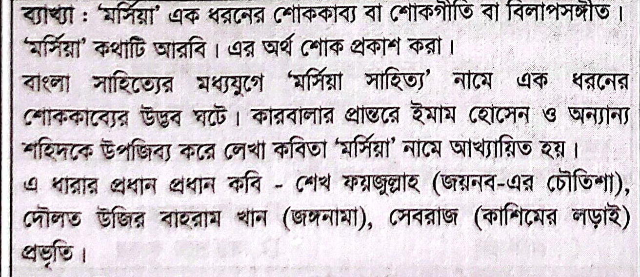 87. ‘মর্সিয়া’ শব্দের অর্থ কী?