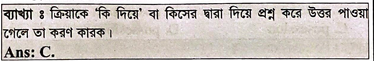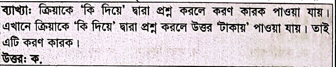 16. ‘টাকায় কি না হয়’—বাক্যটিতে ‘টাকায়’ শব্দটি কোন কারকে কোন বিভক্তি?