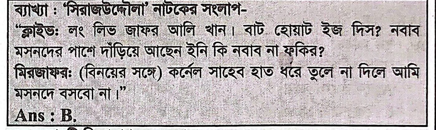 36. ‘সিরাজউদ্দৌলা’ নাটকের ‘ইনি কি নবাব না ফকির’ কে, কাকে উদ্দেশ্য করে বলেছে?