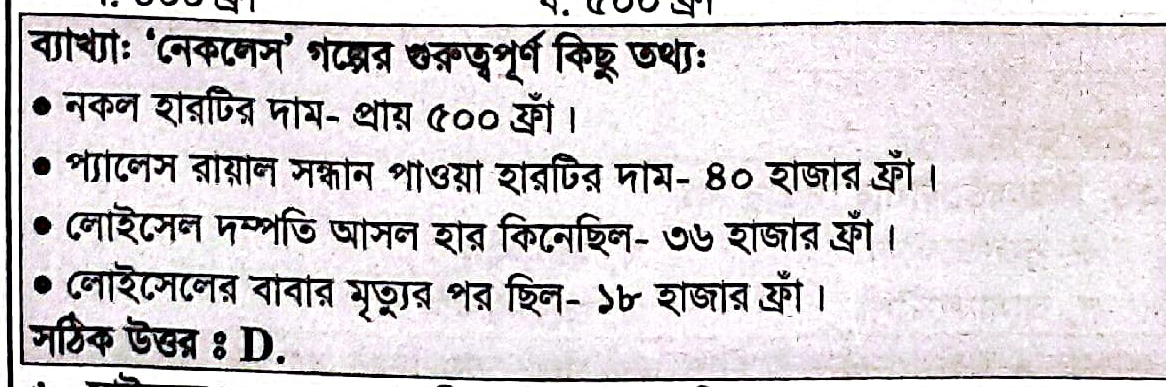 43. নেকলেস গল্পের নকল হারটির দাম কত ছিলো ?