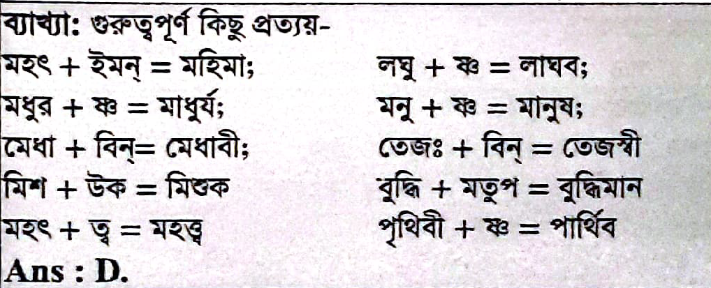44. ’মহিমা’ শব্দের ঠিক প্রকৃতি প্রত্যয় কোনটি?