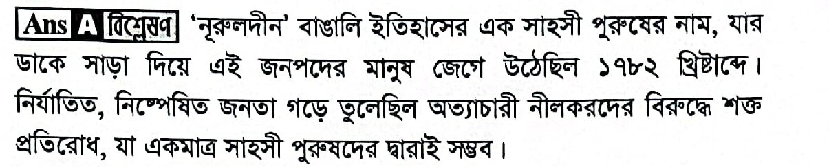 70. নূরলদীনের ডাকে কত খ্রিস্টাব্দে বাংলার মানুষ জেগে উঠেছিল?